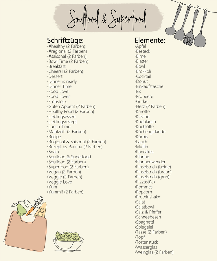 90 Story Elemente zum Thema „Soulfood & Superfood“ für deine perfekten Foodbilder in deiner Instagram Story.