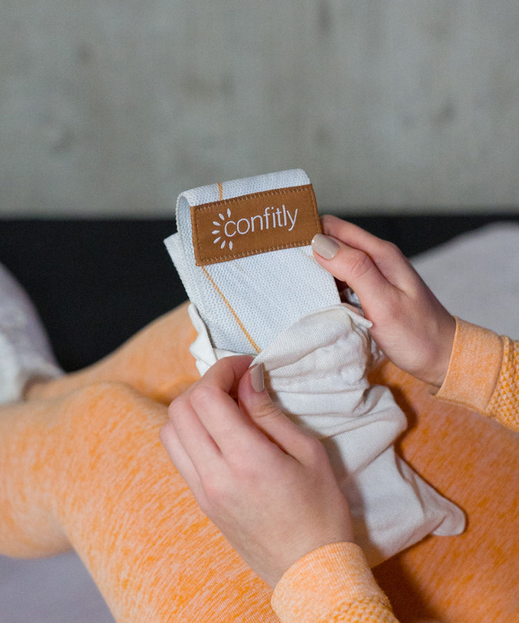 Die Bänder schneiden dank des angenehmen breiten Stoffes nicht ein, verrutschen nicht und es gibt kein unangenehmes Ziepen.