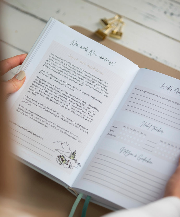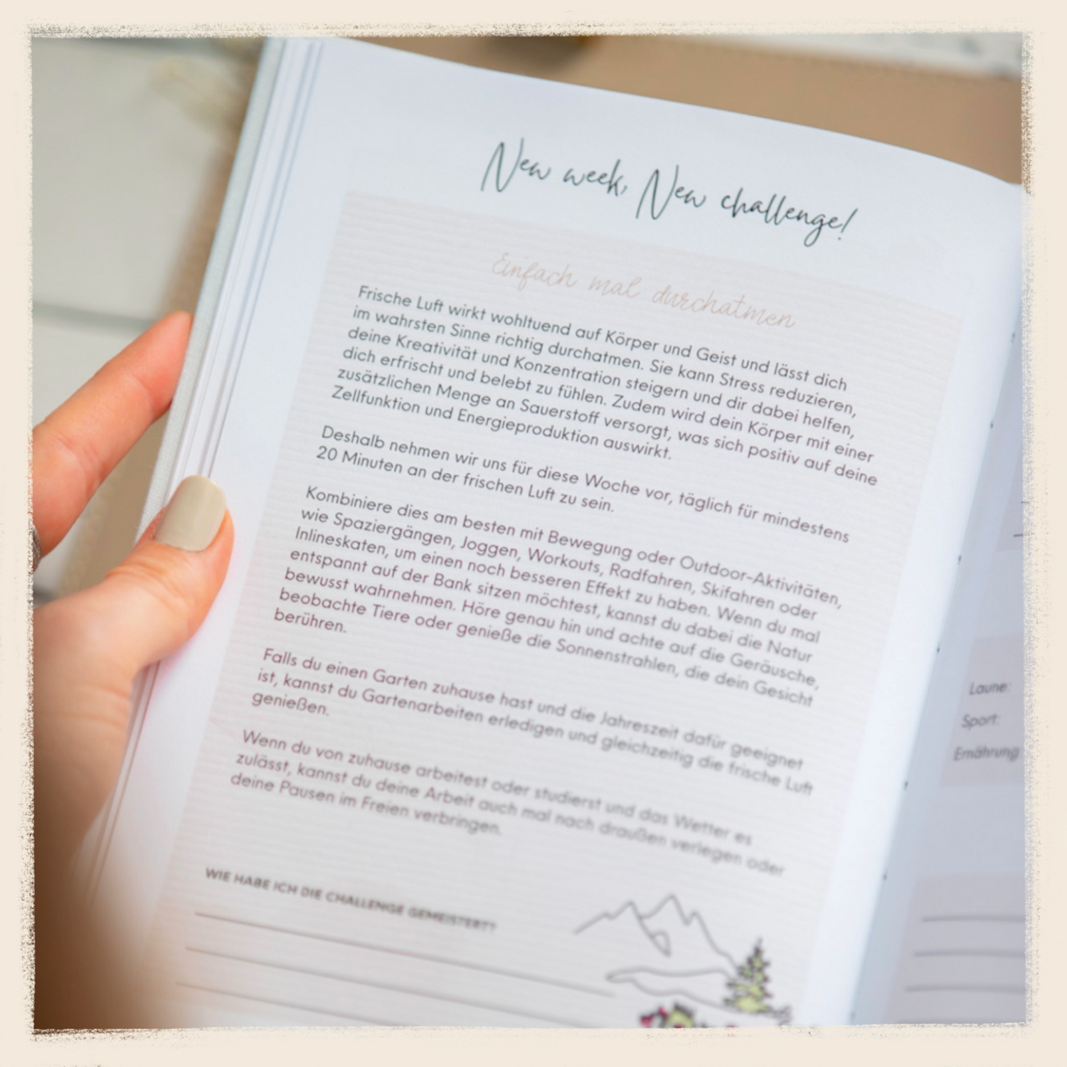 Jede Woche wartet eine neue Wochenchallenge auf dich. Diese Herausforderung darf dich die ganze Woche über begleiten und lässt dich in einen gesunden und ausgewogenen Lebensstil eintauchen.