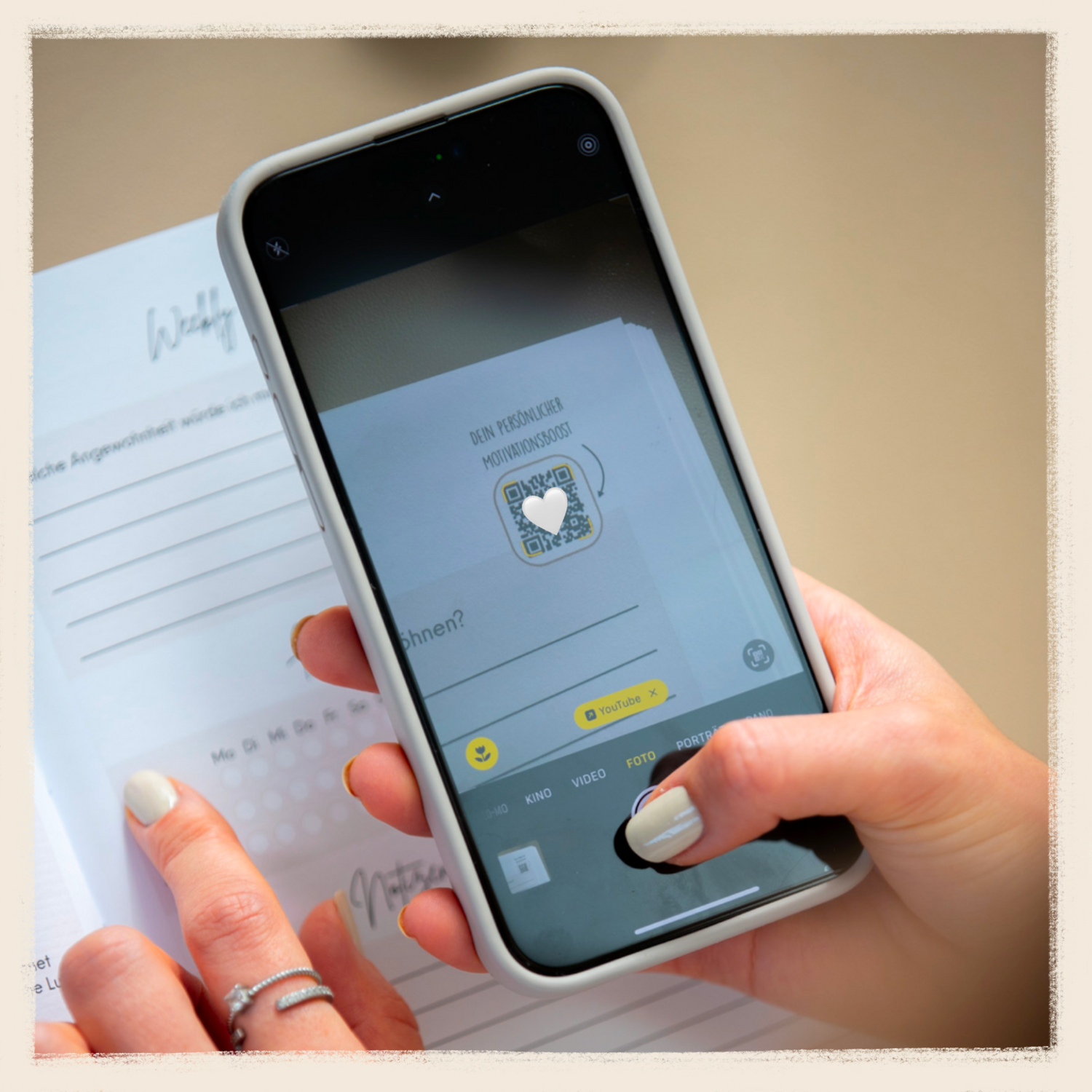 Du findest 12 QR-Codes im Planer versteckt, die dich zu exklusiven und persönlichen Motivationsvideos von Paulina führen. So wirst du das ganze Jahr über motiviert und inspiriert.